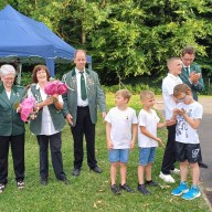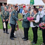 1. Vorsitzende der Schützengilde Buchholz, bei strahlendem Wetter viele Gäste und Abordnungen befreundeter Vereine zum diesjährigen Schützenfest begrüßen.