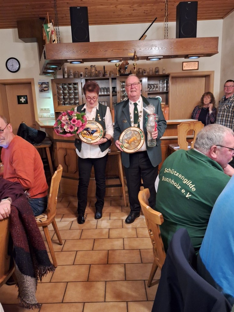 Das Königspaar hatte zu einem gemütlichen Beisammensein mit leckerem Essen und einigen entspannenden Getränken in das Schützenhaus eingeladen und viele Mitglieder der Schützengilde folgten der Einladung.
