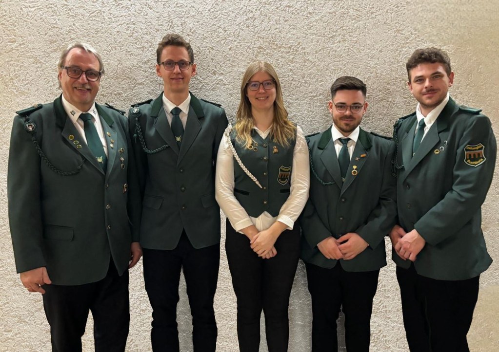 Der Vorstand im Bild von links: Frank Rinne (Schatzmeister), Jan-Hendrik Rinne (Schriftführer), Nadine Rinne (1. Vorsitzende), Nico Silbernagel (2. Vorsitzender) und Alexander Wudke (Schießsportleiter).